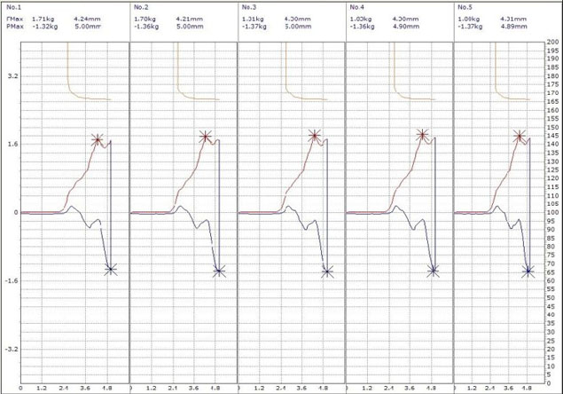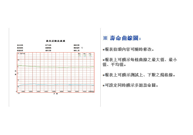 19.  可打印及儲存圖形(插拔位移曲線圖(如圖一)、壽命曲線圖(如圖二)、檢查報表)